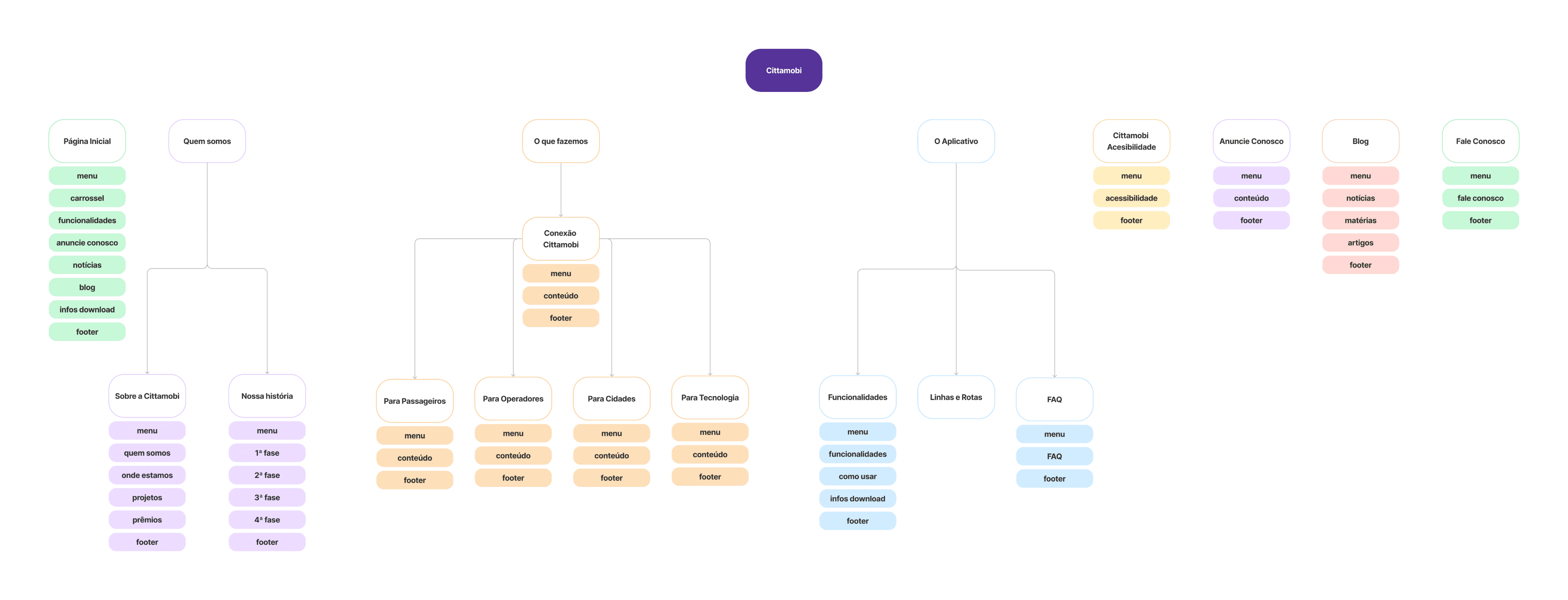 Criação de um sitemap para organizar conteúdos, hierarquia e fluxos de navegação.